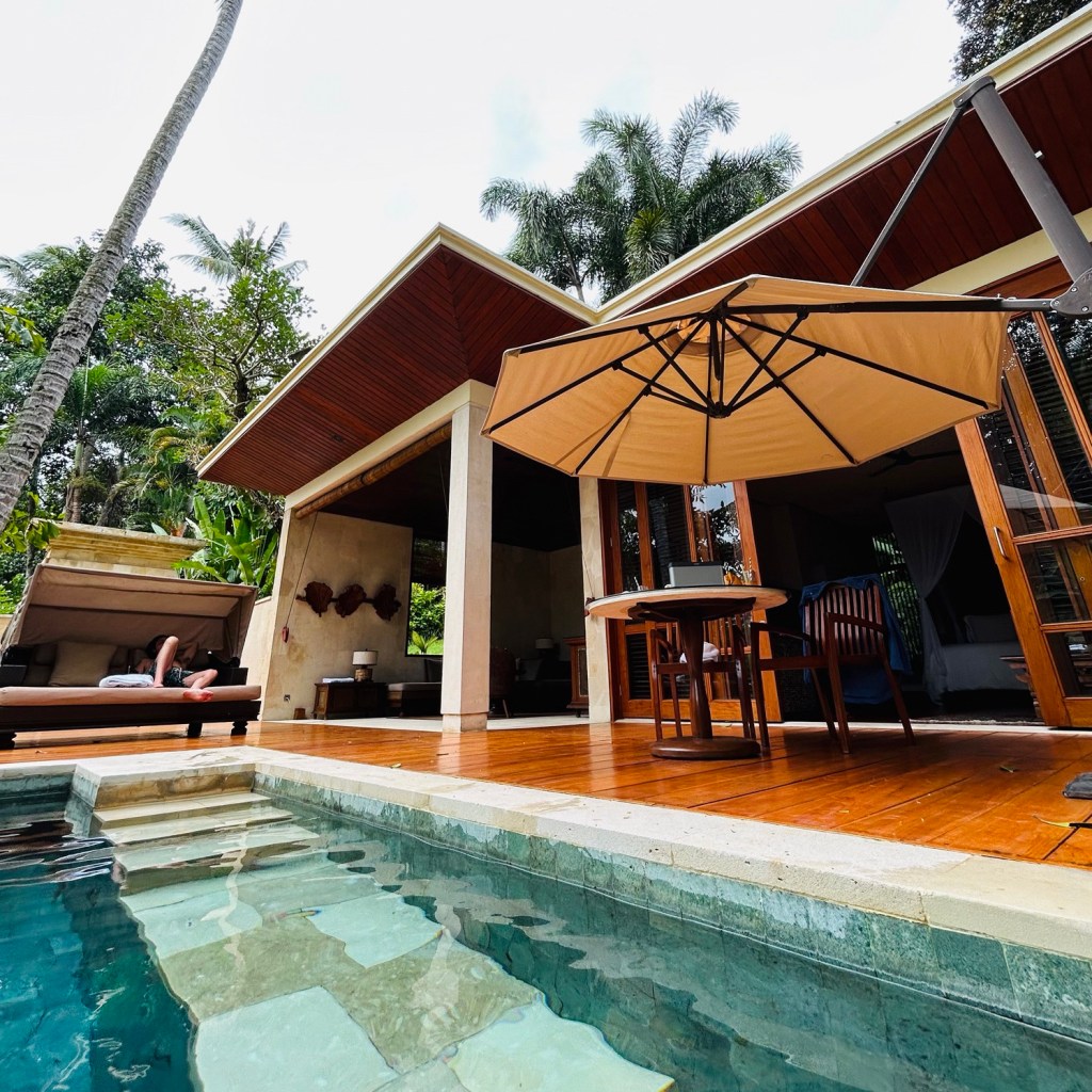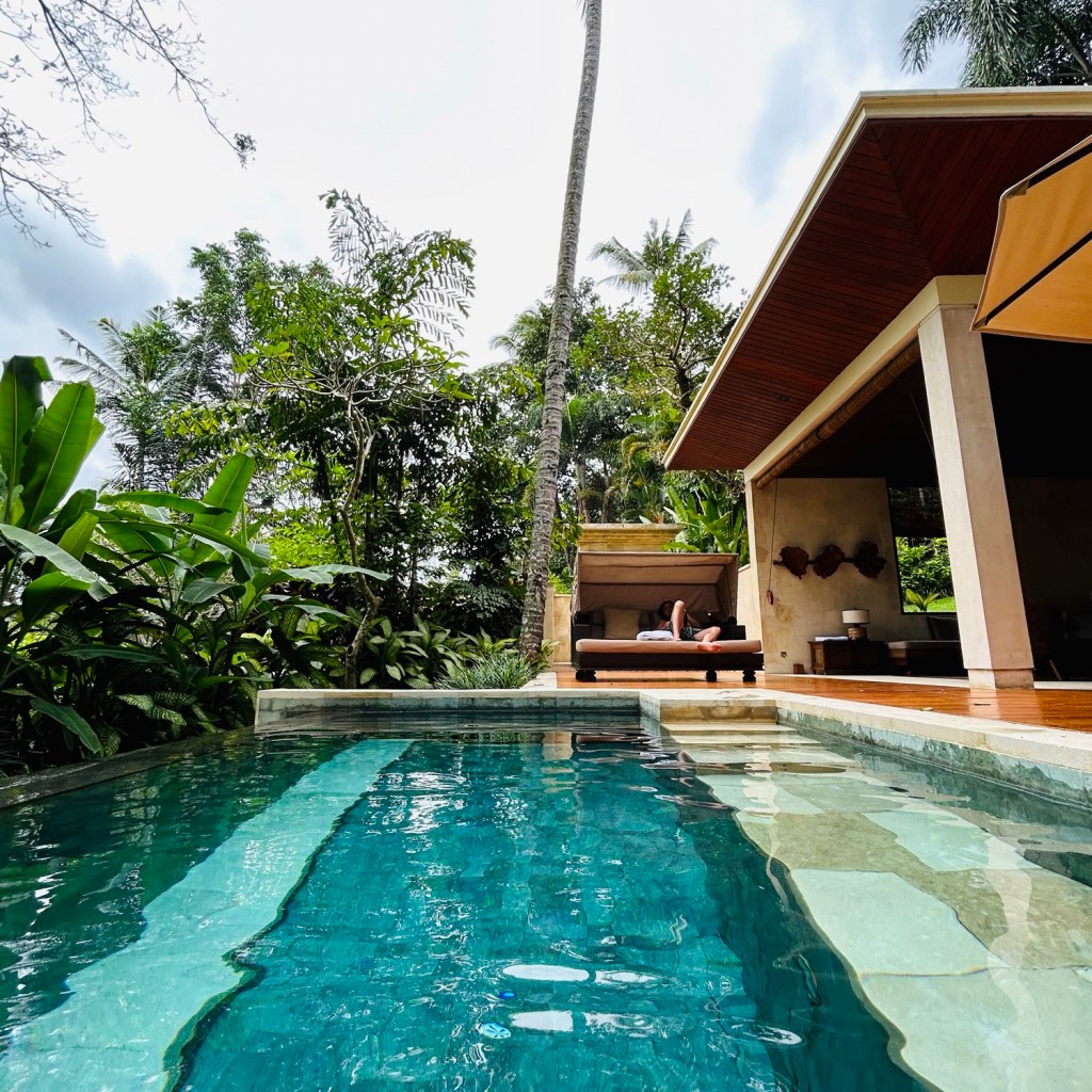 The highlights of my stay were undoubtedly the early morning meditation at the lotus pond and the Sacred River Valley. I have never seen a spa set in such remarkable nature. The wellness experience felt deeply spiritual, thanks to the tranquil atmosphere and the magic energy of the Ubud backdrop. The treatments are based upon Balinese healing rituals and inspired by the energy of flowing water. Whether you choose a couple’s massage or prefer to unwind solo, it’s a unique wellness experience where nature’s power harmonizes with ancient traditions. The outdoor plunge pools overlooking the rice fields, the 3D background of the jungle, and the sounds of the flowing river, made for an incredibly rejuvenating experience.